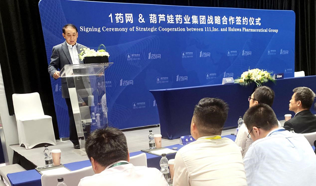 ▲1药网执行董事长于刚在签约仪式上致辞